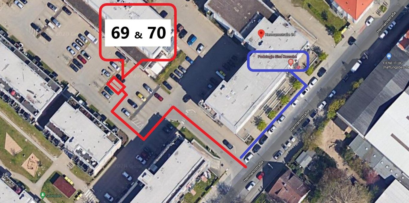Auf dem Innenhof stehen meinen Patienten zwei Parkplätze zur Verfügung (Nr. 69 und 70).